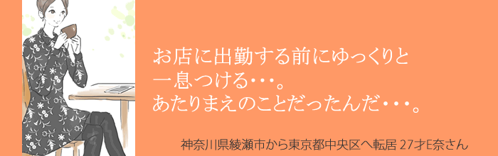 神奈川県綾瀬市から東京都中央区へ転居 27才E奈さん