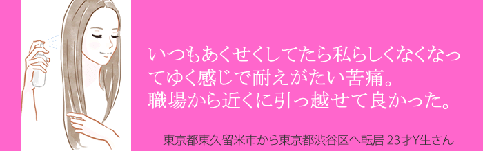東京都久留米市から東京都渋谷区へ転居 23才Y生さん
