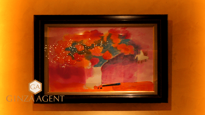 また、藍(らん)RANという、お花にちなんだ名称であるとおり、店内を彩る特別なお花の絵画と、センスあふれる生け花が見事にマッチして、藍の空間を華やかにしてくれています。おもてなしは、お客様のみならず、実はホステスさんへのおもてなしとも言えそうです。