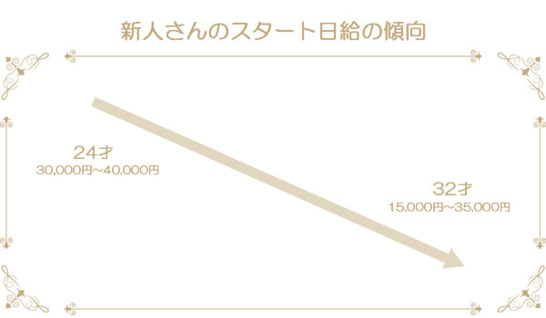 ナイトワークを始めたいならスタートはできるだけ早い時期が有利なのです。時期が遅いとお給料にも差があるばかりか、求められる仕事量、望まれる接客の品質も格段に上がります。20代後半あたりから年齢的に人生の先輩としてみられてしまいます。