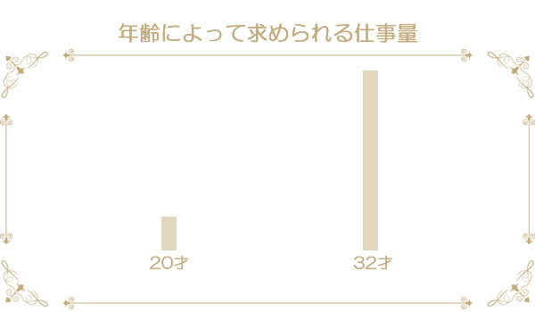 20歳代後半~30歳代ともなるとベテランさんとして見られるようになり、しっかりとした出勤日数が求められます。
