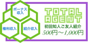 あなたが紹介したAさんはあなたの権利となり、トータルエージェントはAさんをあなたの権利所有としてあなたの権利収入と認定します。トータルエージェントでは、ユニークな紹介手段をご用意しています。まるで、当事者が意図的に紹介されことを気が付くことがむずかしくスマートで綺麗な方法でトータルエージェントに実質的に紹介できます。紹介することがあなたの良心ともいうべきことに葛藤する状態であればトータルエージェントと致しましてはムリにご紹介いただかなくてもかまいません。紹介するかしないかはあなた次第ということになります。トータルエージェントでは、あなたにとって最善で最良のコミュニケーションシステムをご用意しており、無理がなくダメージもなく、人間関係を壊すようなプロモーションも致しません。ごくごく自然な成り行きで紹介者様はサービスを受けられてゆきます。